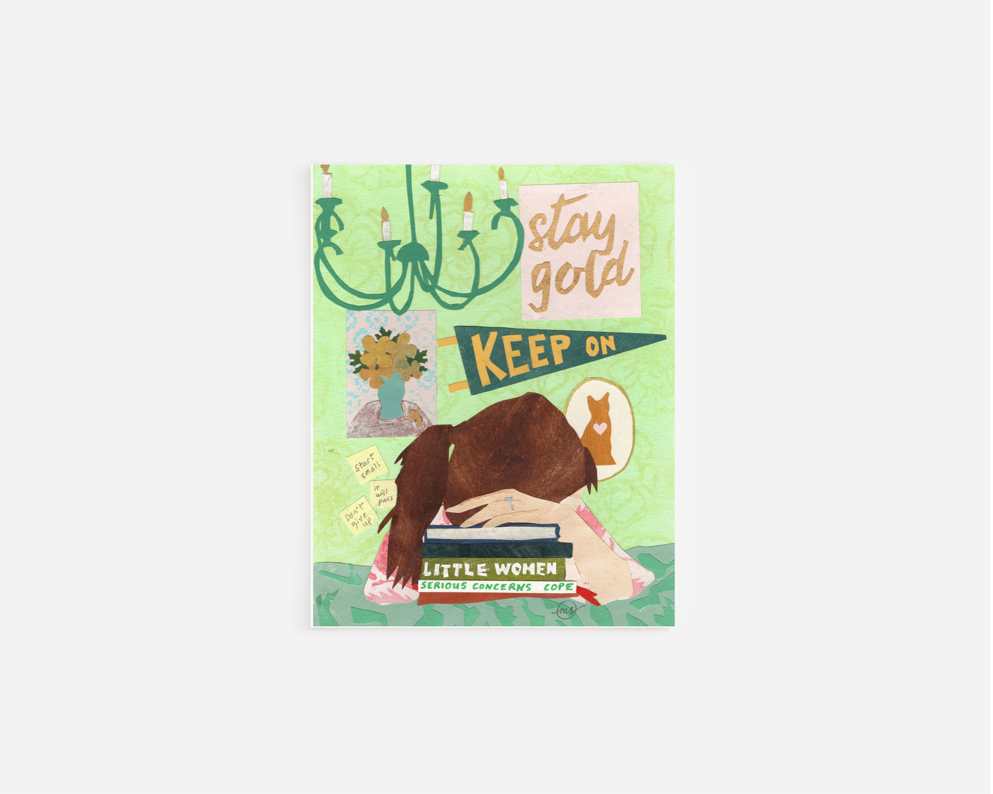 Each A2 greeting card is a reproduction of an original, handmade paper collage. Cards are blank inside for your personal message.